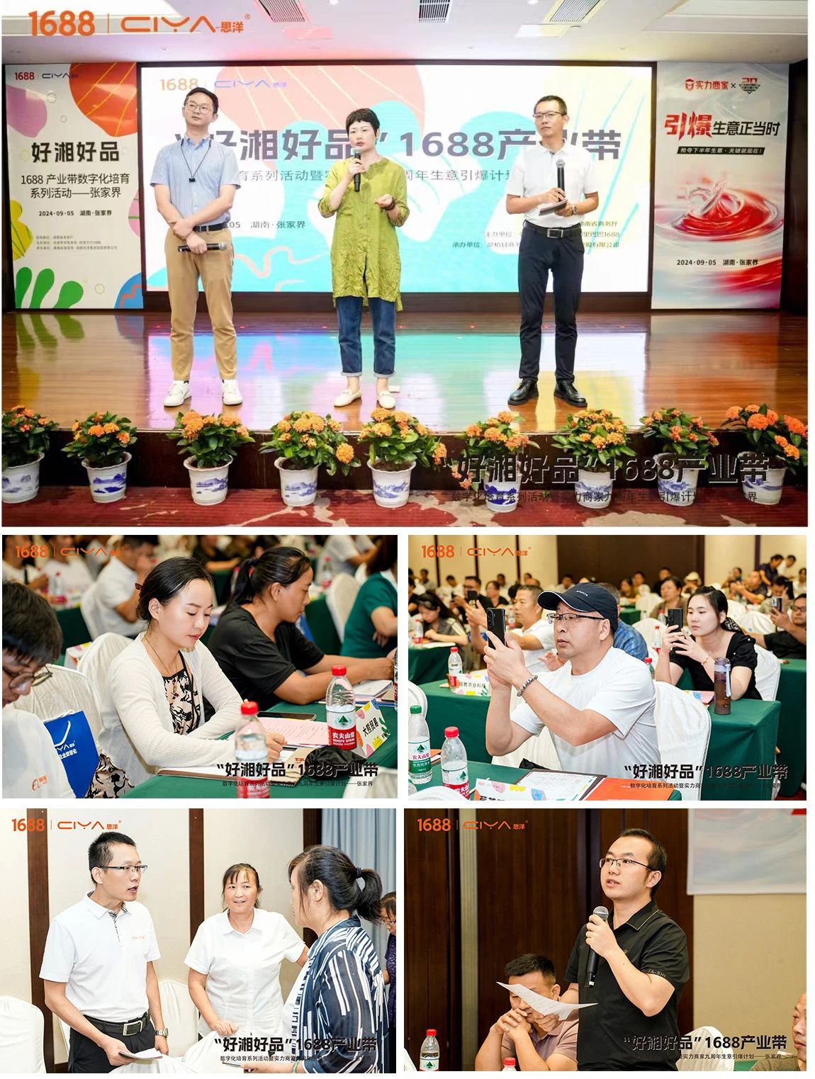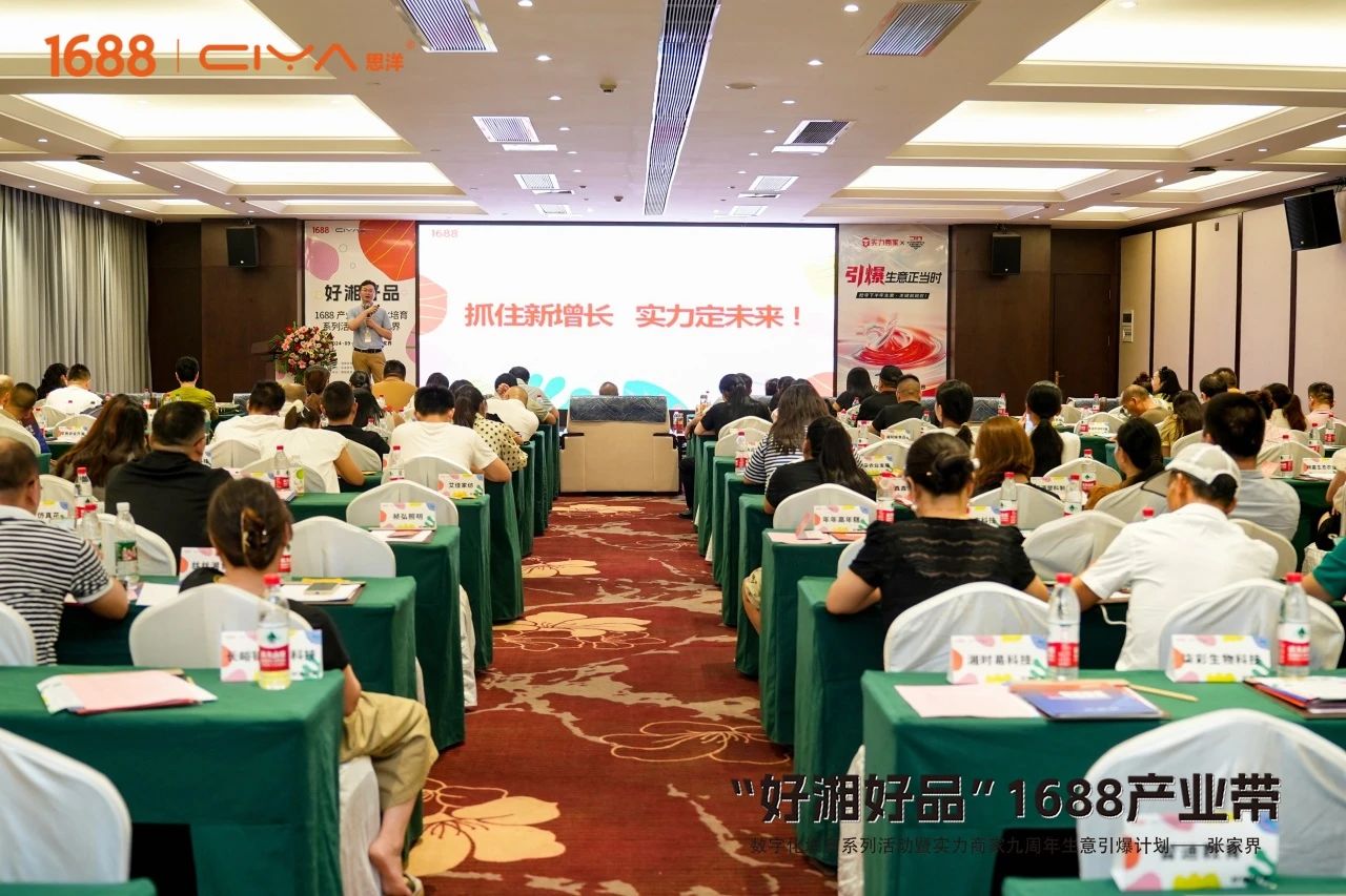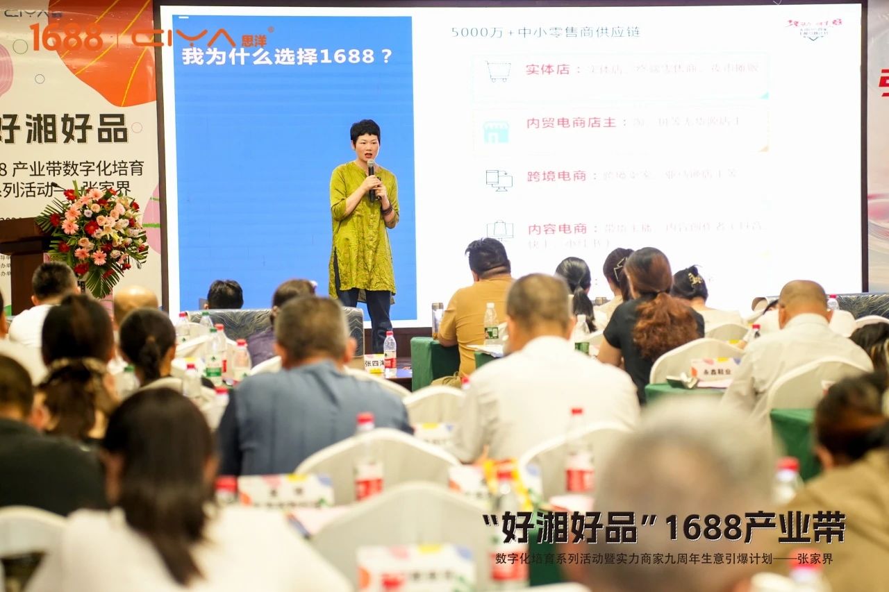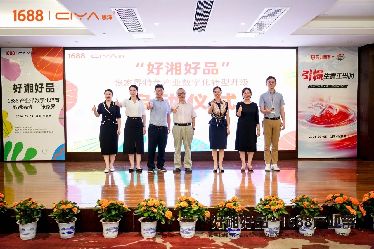 9月5日,“好湘好品”1688产业带数字化培育系列活动暨实力商家九周年生意引爆计划在张家界桑植成功开展。湖南省商务厅电子商务处二级调研员刘琦,张家界市商务局局长郁双菊,张家界商务局党组成员、副局长张四海,桑植县人民政府副县长龚召君,桑植县商务局党组书记谭晓菊,桑植县政协副主席、商务局局长钟晶晶,1688本地商业发展部区域总经理张海,1688本地服务伙伴湖南电洋信息科技有限公司总经理刘长伟,思洋集团副总经理、湘跨协跨境贸易专委会秘书长吴双,1688商学院认证讲师、盛世湘容总经理王飞亮以及张家界区县商务系统电商负责人受邀出席,张家界企业代表140余人参加活动。